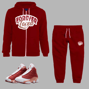 Forever Laced Zipped Hoodie Sweatsuit to match Retro Jordan 13 Red Dune sneakers