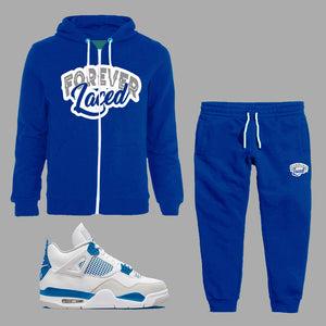 Forever Laced Hoodie Sweatsuit to match Retro Jordan 4 Military Blue sneakers