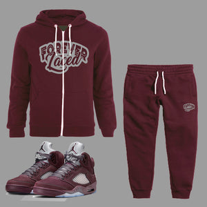 Forever Laced Zipped Hoodie Sweatsuit to match Retro Jordan 5 Burgundy sneakers